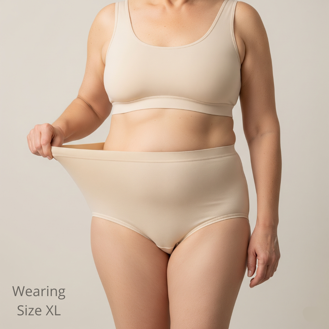 Comfortiva™ is made from a soft, breathable blend of cotton and spandex for all-day comfort. The built-in absorbent layers use advanced moisture-wicking technology and a waterproof barrier to keep you dry and confident — without feeling bulky or plastic-like.